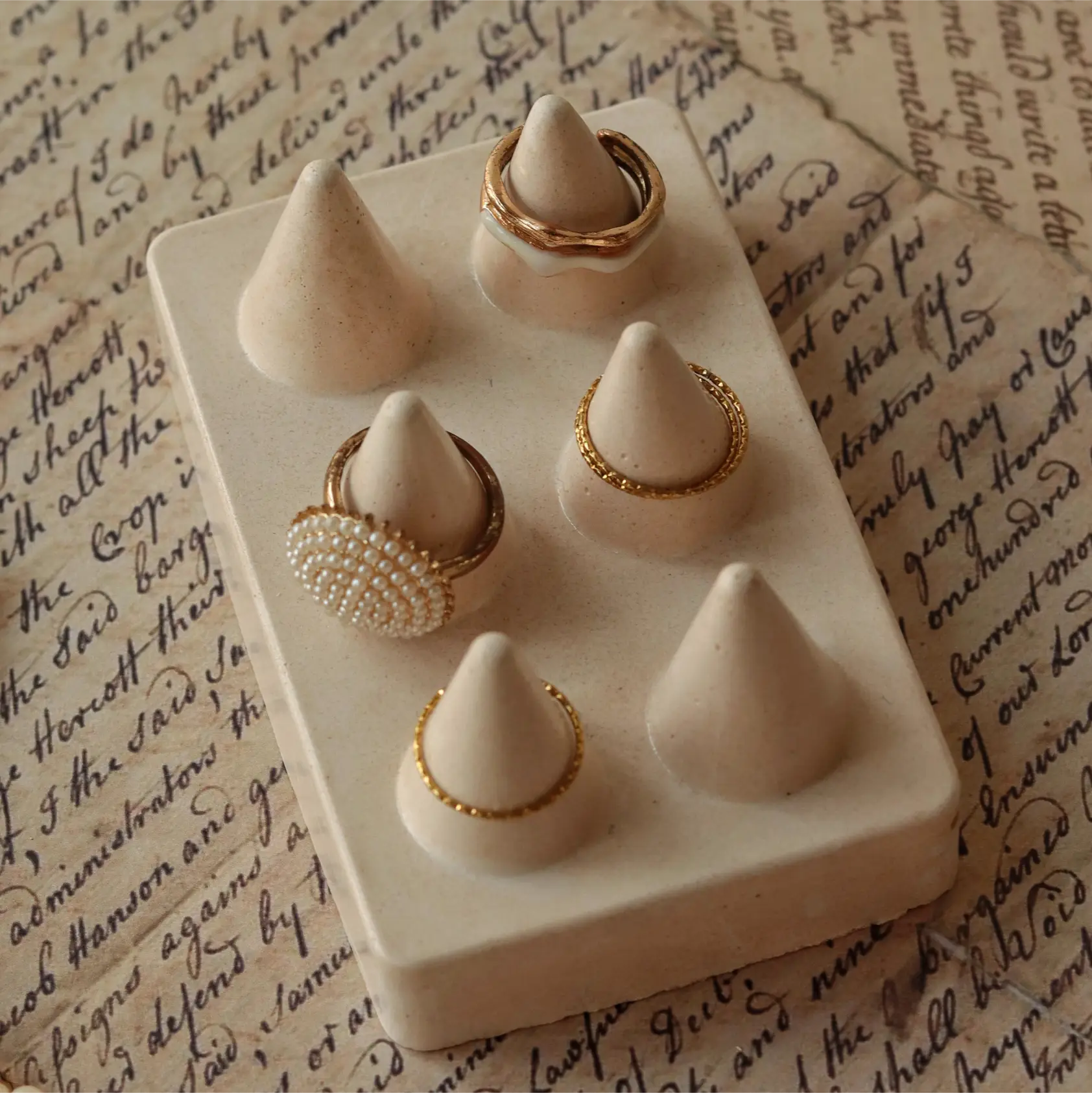 حامل خواتم مخروط لتنظيم خواتمك بشكل مرتب وواضح، بتصميم هندسي مكوّن من ستة مخاريط وملمس حجري طبيعي.