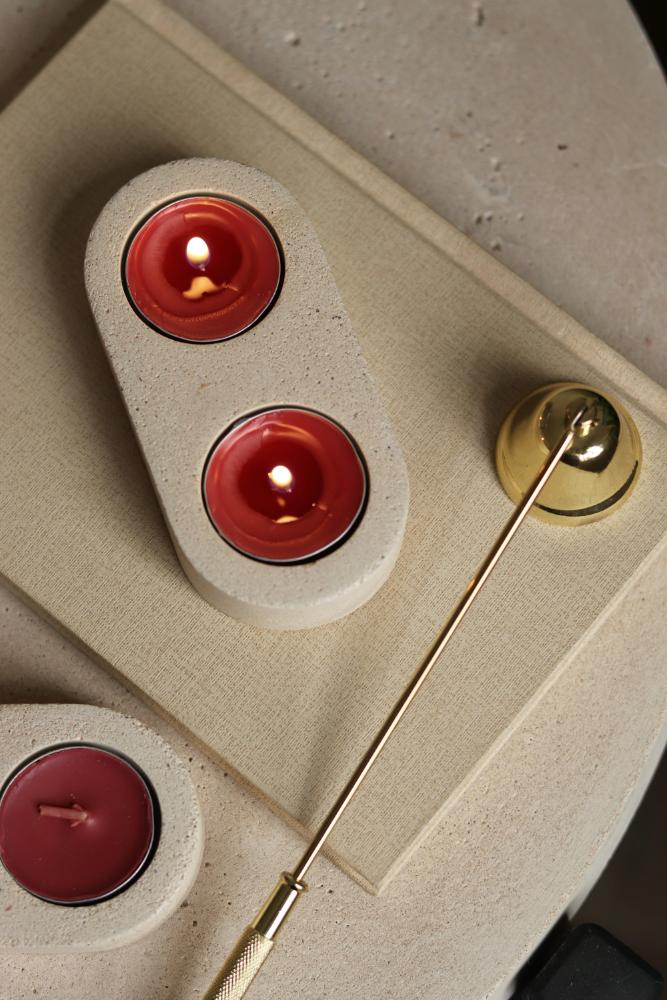 صُنِع من خليط كونكريت متين بملمس حجري طبيعي، ليجمع بين الثبات والمظهر الهادئ. شكله البسيط يجعله مناسبًا لطاولات القهوة، ركن الضيافة أو حتى جلسات المساء الهادئة.