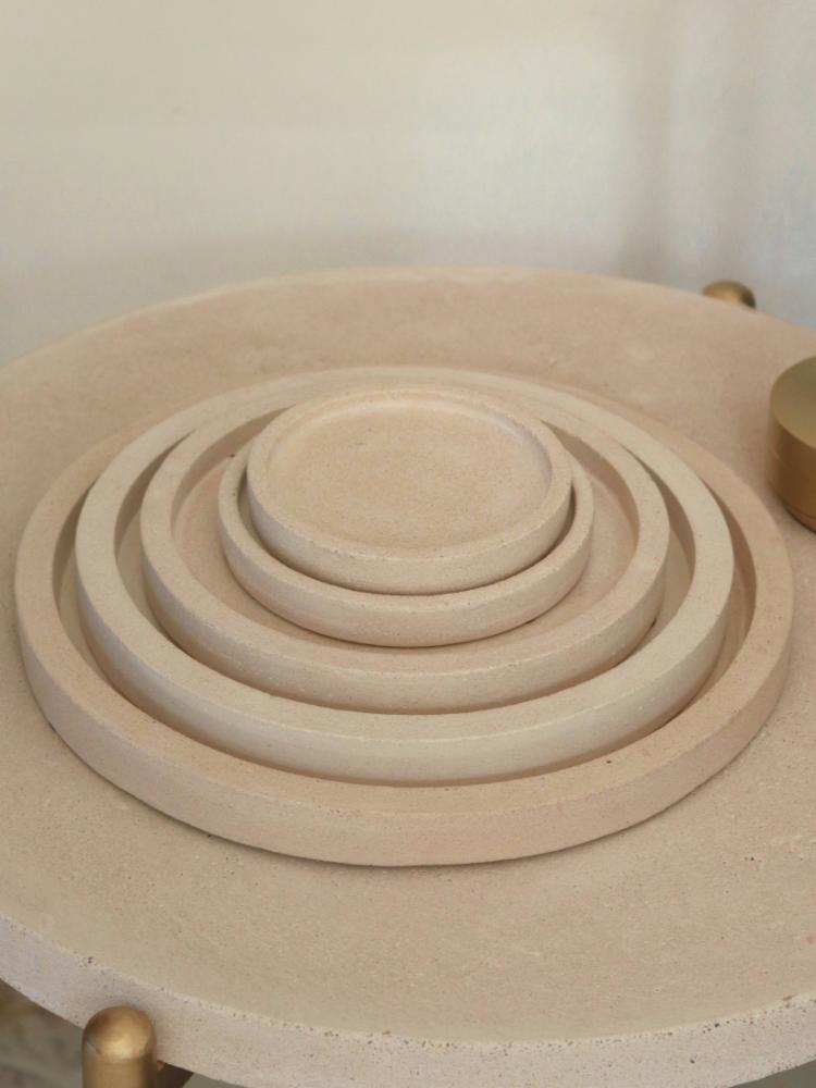 شكلها الدائري يسهّل تنسيقها مع مختلف العناصر، سواء كانت مبخرة، عطور، شموع أو تحف صغيرة. وجودها يساعد على جمع القطع في إطار واحد، بدل أن تبدو متفرقة في المساحة.