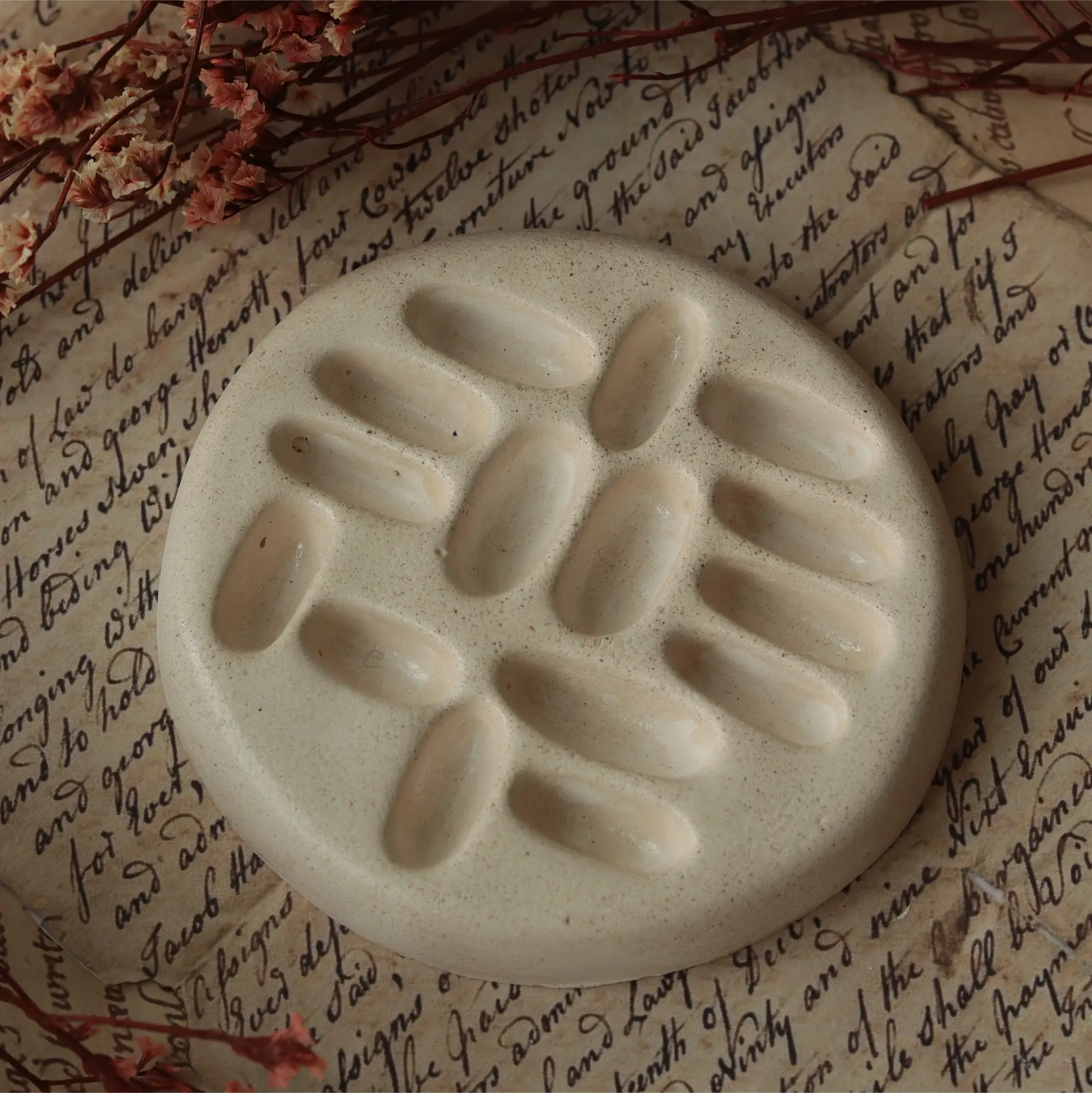 قاعدة خواتم لتنظيم خواتمك اليومية بشكل واضح وأنيق، بتصميم غير متماثل يضيف طابع فني وملمس حجري طبيعي.