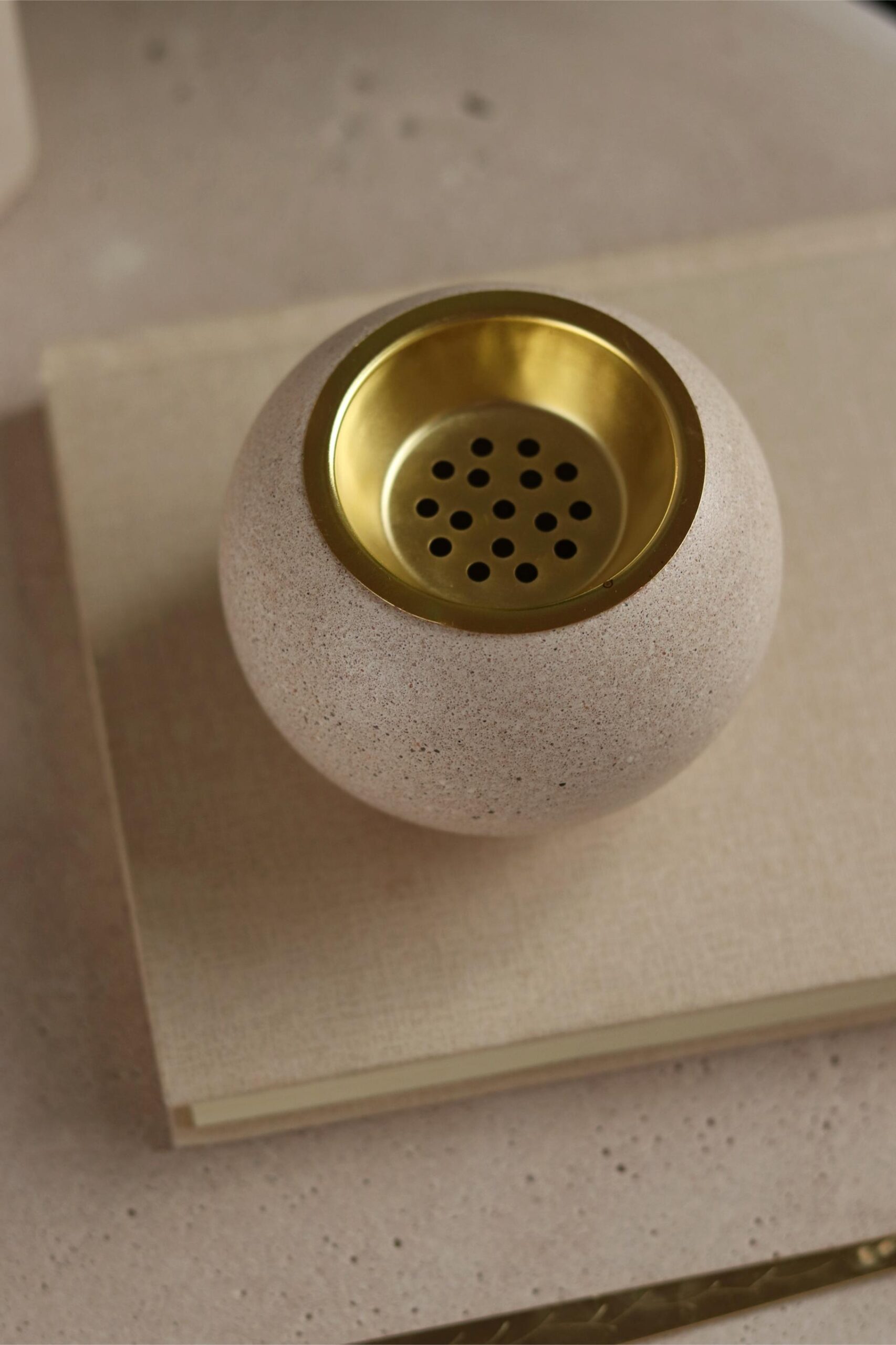 مبخرة بدور بتصميم كروي ناعم يعكس البساطة الكلاسيكية، مصنوعة من خليط كونكريت بملمس حجري طبيعي، تضيف لمسة دافئة وأناقة هادئة لأي مساحة.