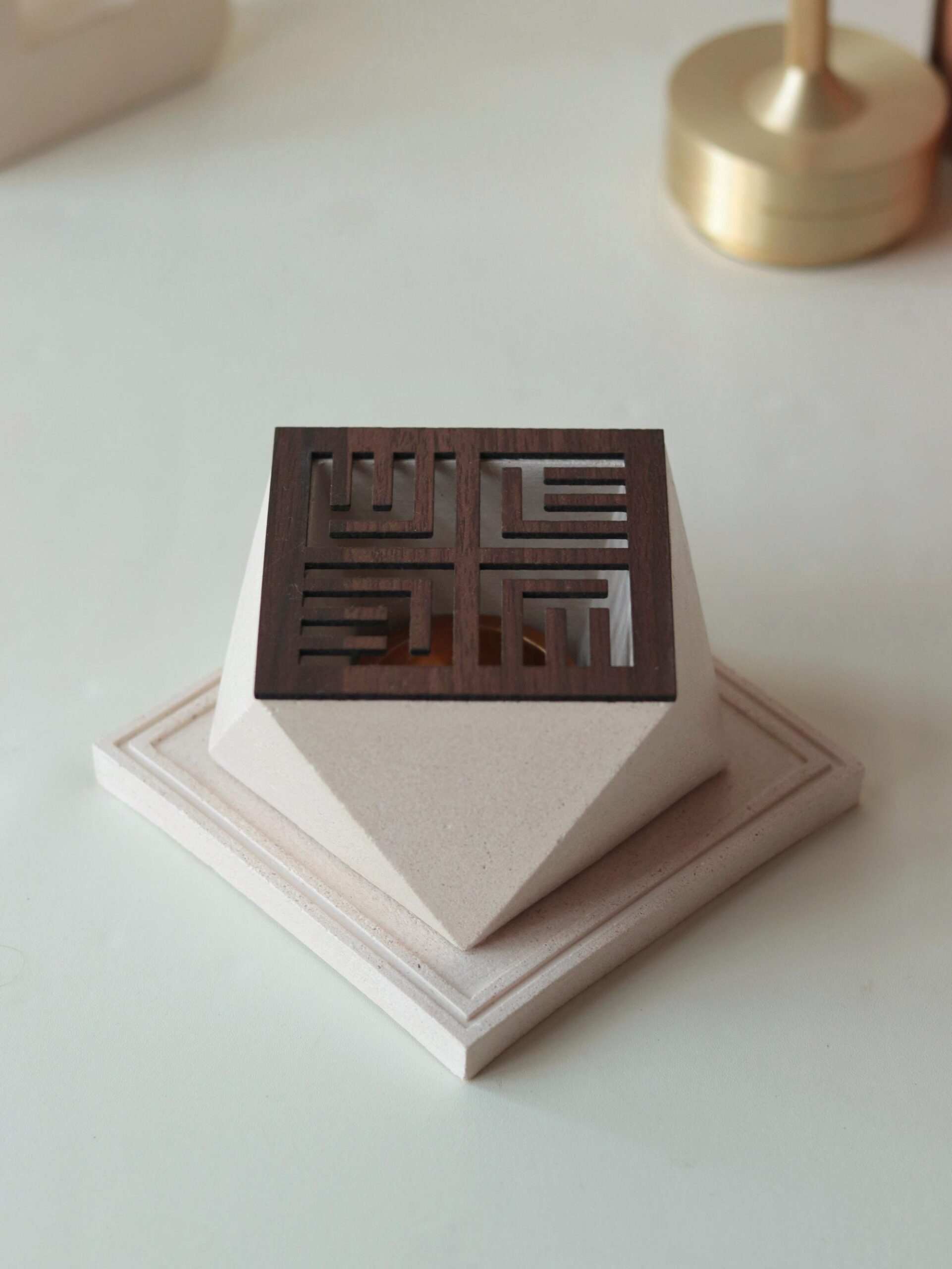 في هدوء الزوايا وتفاصيل المساحات الراقية، تتألق مبخرة صفاء بتصميمها المثلثي المتوازن، كقطعة تعكس البساطة النقية والانسجام البصري. حضورها هادئ لكنه واضح، يضيف لمسة فخامة مدروسة دون مبالغة، ويمنح المكان طابعًا دافئًا وأنيقًا.